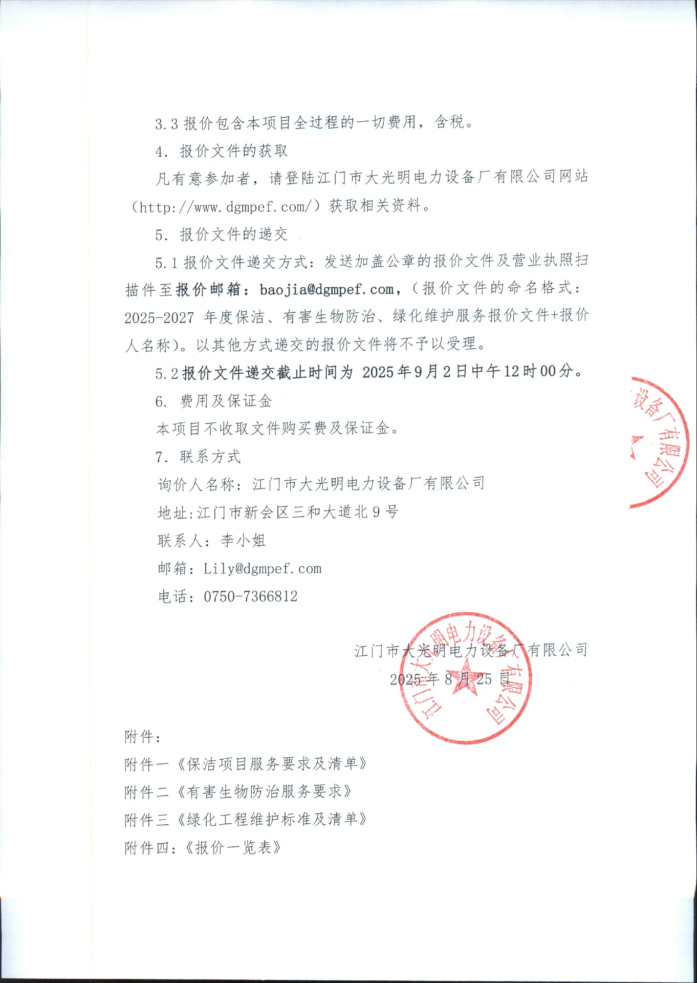 江门市大光明电力设备厂有限公司 2025-2027年度员工商业保险意外保险询价公告